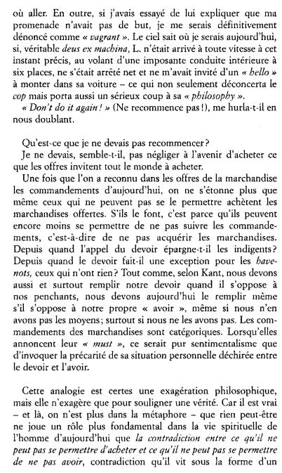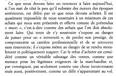Je connaissais pas du tout c'est bien dit mais un brun romantique nos conditions sont définies on peut les modifier par notre action mais on restera dans ce rapport marchand le probleme n'étant pas d'avoir ou de pas avoir mais de pourquoi avoir pour qui pour quoi mais tout le monde le fait: "j'ai, donc je suis"