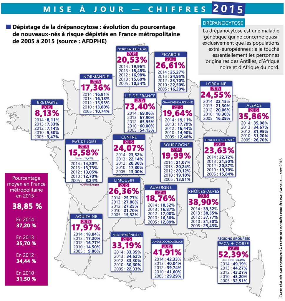Quand tu regardes les anciens graphiques parlant des dépistage de la drépanocytose, tu vois : 2009 - 38% d'enfants testés , 2012 - 40, 2014 - 42 , 2015 - 45 (un truc à peu près comme ça ) puis ensuite ils ont fini par ne plus publier ça