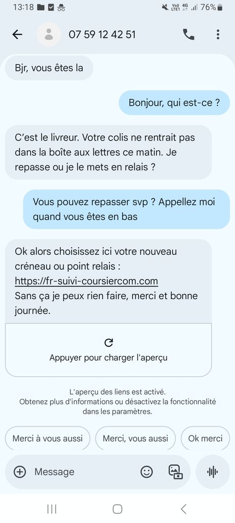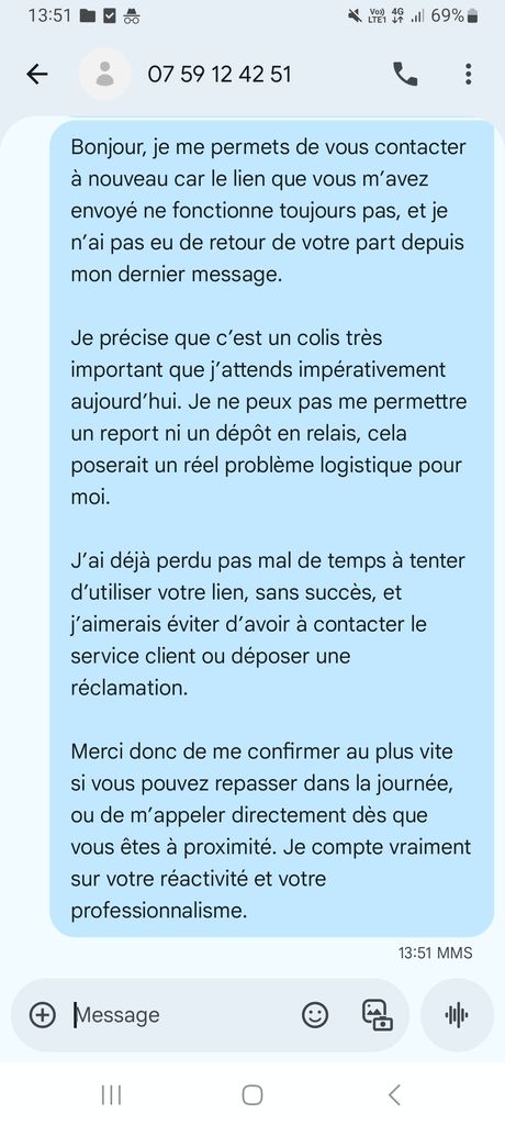 Après il t'envoie sur leur site pourris pour reprogrammer la livraison.