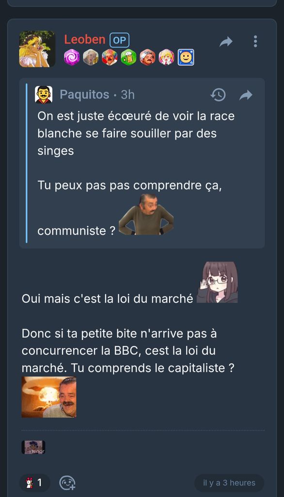 Il va ban tout ceux qui se sont foutu de son délire de viande cru, à savoir les 3/4 du forum